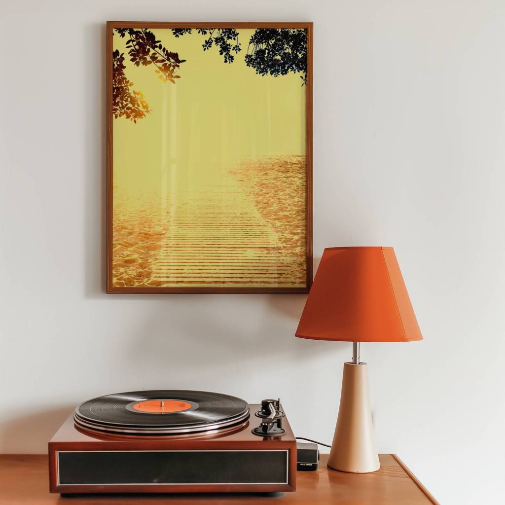 Sunshine Yellow captures a quiet coastal moment where warm light, soft sand, and still water meet. Guided by a simple path to the sea, the digital composition brings a sense of calm, clarity, and gentle optimism, designed to brighten your space and evoke the feeling of sunlit air and open horizons.